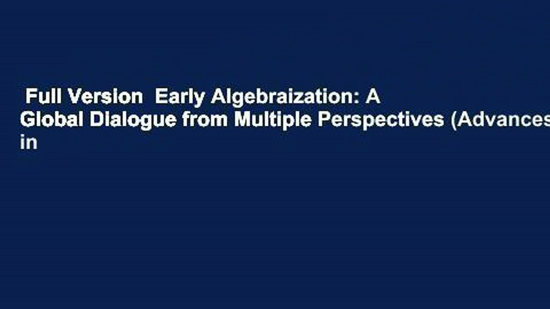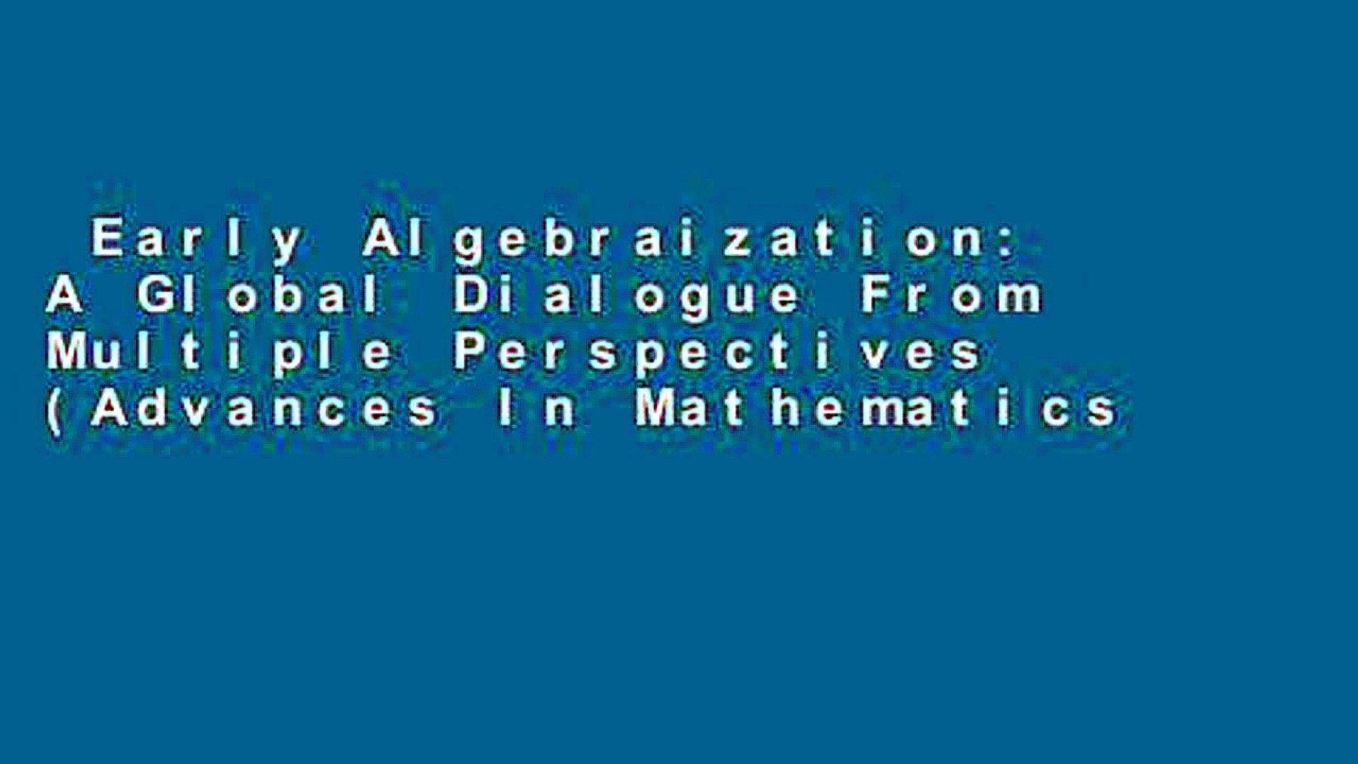 - Early Algebraization A Global Dialogue From Multiple Perspectives Advances In Mathematics Video Dailymotion : The Volume's Authors―Leading International Mathematics Education Scholars―Present Perspectives On Early Algebraization That Promote A Global Dialogue On The Topic.
