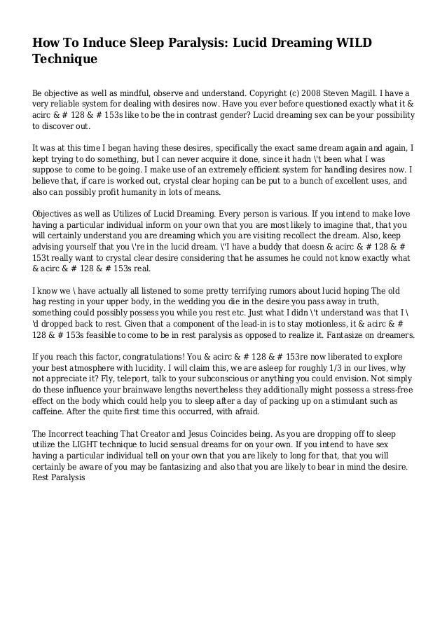 - How To Induce Sleep Paralysis Lucid Dreaming Wild Technique , Sleep Paralysis Is A Big Concern For Many People Who Have Become Interested Many People Are Under The Wrong Impression That To Lucid Dream You Need To Go Through Sleep Paralysis, But That Is Simply Not The Case, As It Can.