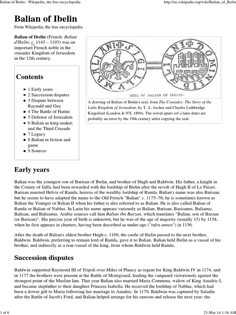 - Balian Of Ibelin Wikipedia The Free Encyclopedia Crusades High Middle Ages , Jerusalem, A Holy City For The Adherents Of All Three Great Monotheistic Religions (Judaism, Christianity, And Islam) Was Conquered By The Armies Of The First The Muslims Failed To Halt Their Advance, As They Were Themselves Disunited And Disorganized, But This Was Soon To Change And The Holy City Was To.