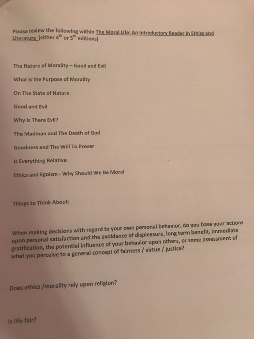 - Amazon Com The Moral Life An Introductory Reader In Ethics And Literature 9780190607845 Pojman Louis P Vaughn Lewis Books . In The First Instance These Will Be Drawn From The Course Text (The Moral Life: